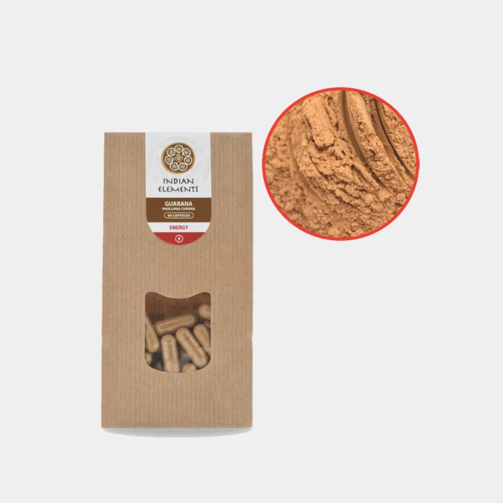 Indian Elements Buy Guarana contains 60 capsules of carefully selected Paullinia Cupana extract. Guarana is a plant native to the Amazon region, where it has been used for centuries by indigenous peoples. The plant’s seeds are known for their natural caffeine content, contributing to guarana’s popularity in various applications. The capsules are easy to take and entirely plant-based. They fit into an active lifestyle and are often chosen as a herbal supplement for daily use.